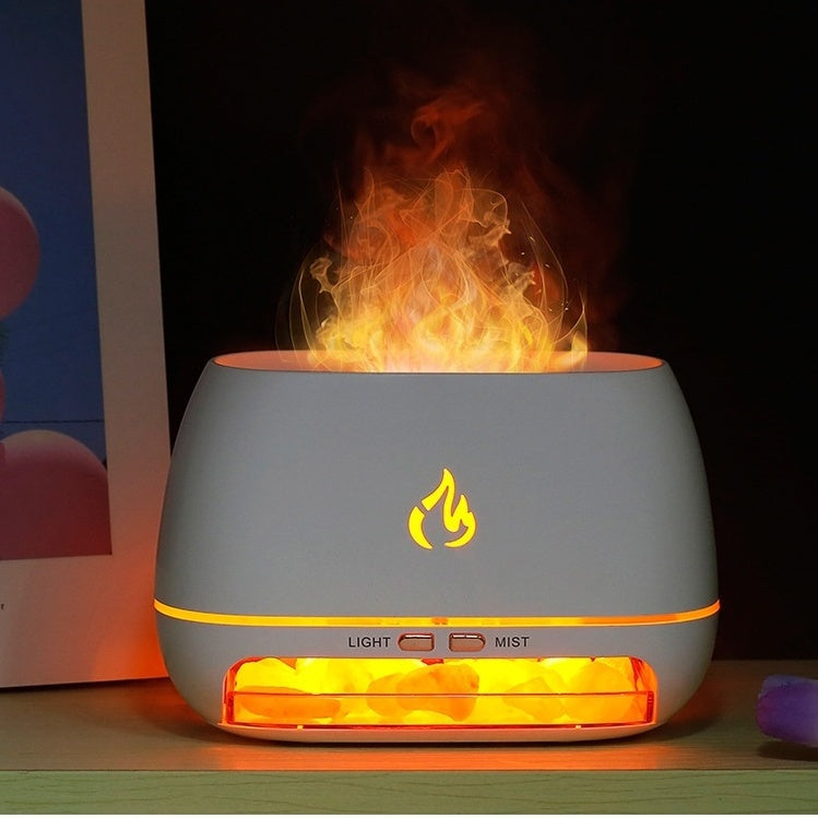 Introducing our Salt Stone Flaming Humidifier. Comfort and Calm in One Beautiful Design. Enjoy soothing mist, a warm glow, and a cozy atmosphere - perfect for relaxation and style in any room.
